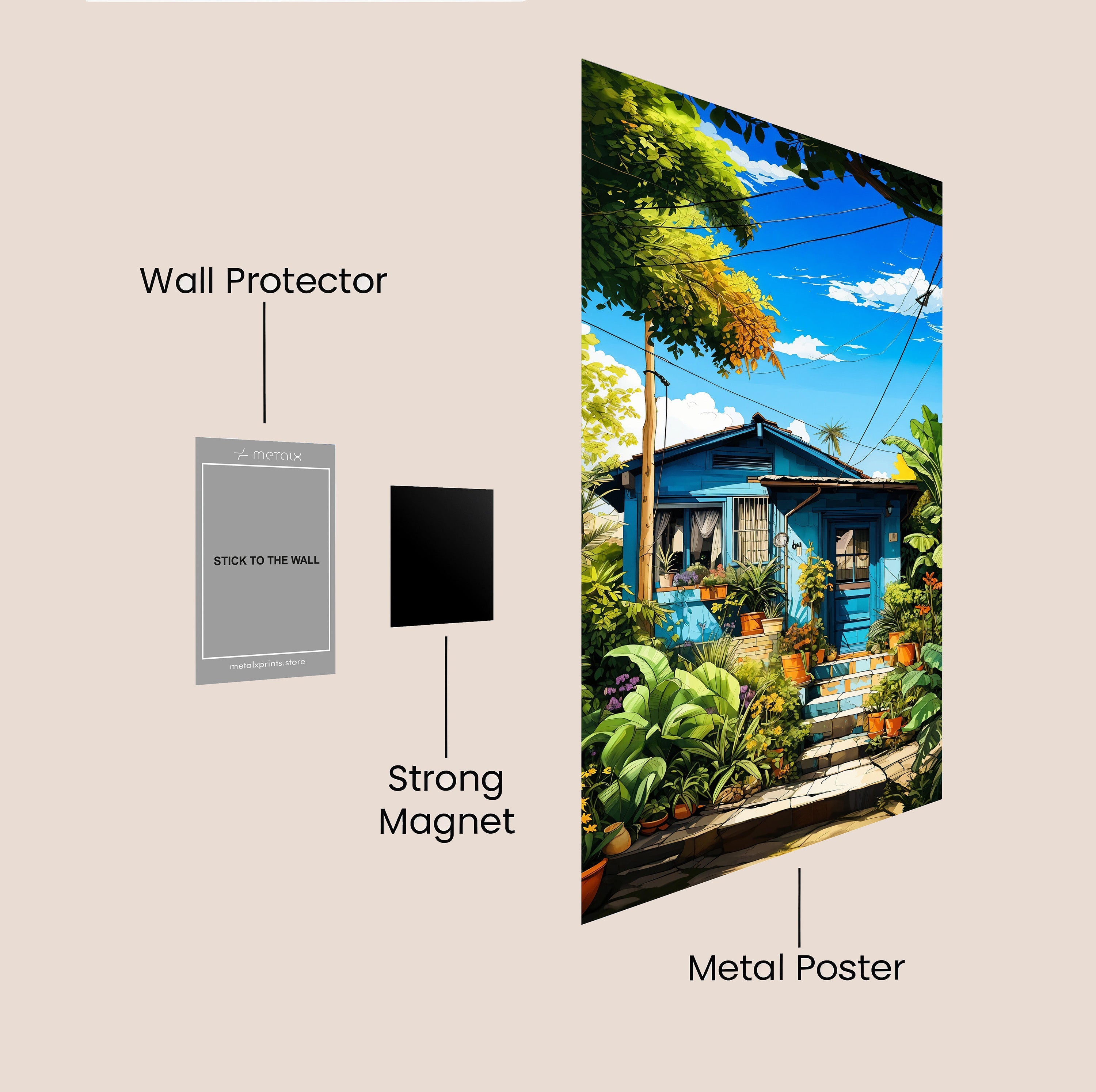 1 Metal poster, 1 Protective leaf, 2 Magnet